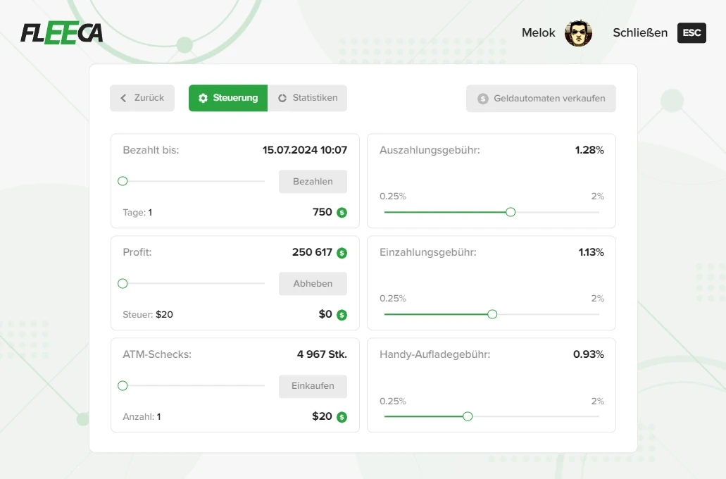 Es ist wichtig zu betonen, dass die Spieler ohne den Kauf von Materialien (Schecks) nicht in der Lage sind, Abhebungen oder Aufladevorgänge über Ihren Geldautomaten durchzuführen. Daher ist es ein Schlüsselelement erfolgreicher Unternehmensführung, dafür zu sorgen, dass die erforderlichen Materialien verfügbar sind, denn ohne sie sind sowohl Abhebungen als auch Aufladungen unmöglich.