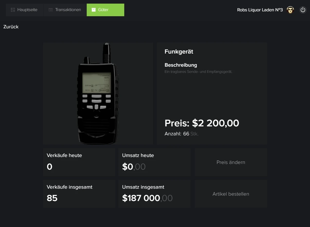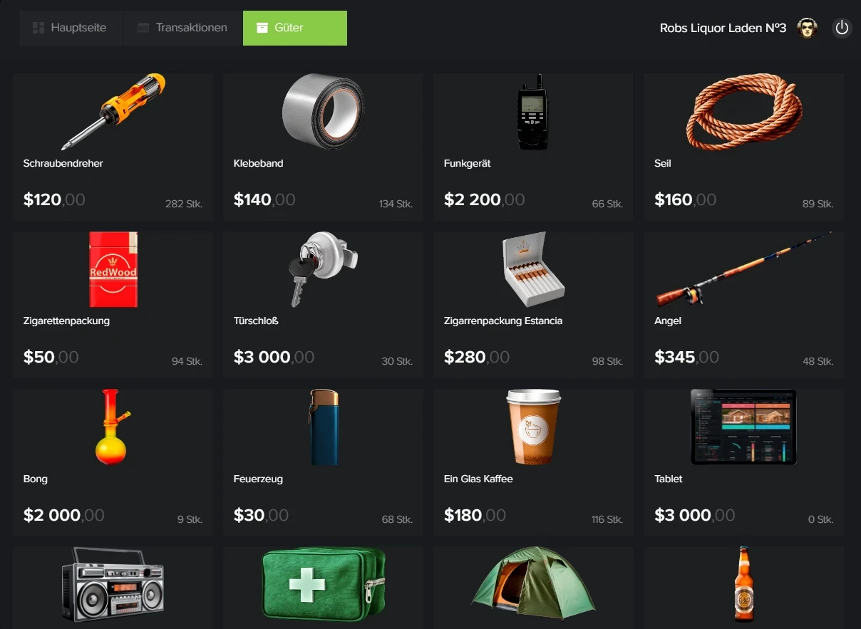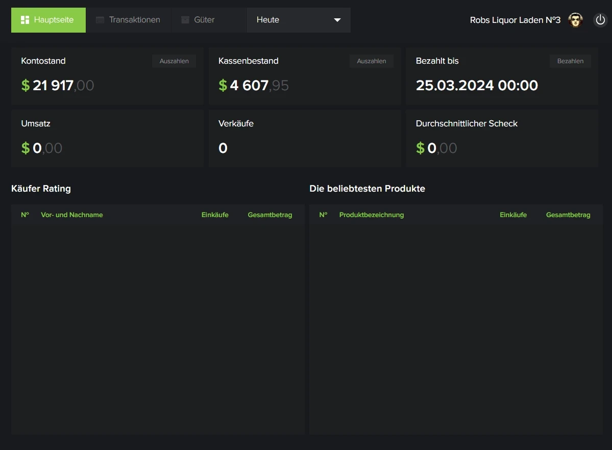 Der Kauf eines 24/7-Einkaufsladens ist über den Marktplatz, Auktionen auf dem Marktplatz oder direkte Käufe von anderen Spielern möglich. Bitte beachten Sie: Wenn Sie weniger als 5 Stunden pro Woche online sind, kann Ihr Unternehmen Ihnen weggenommen werden. Sollten Sie einmal eine Woche nicht online sein können, informieren Sie bitte die Administration darüber.