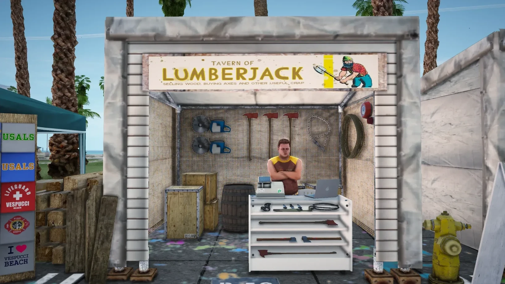 Hier kannst du eine Axt kaufen und auch verschiedene Holzmaterialien verkaufen.