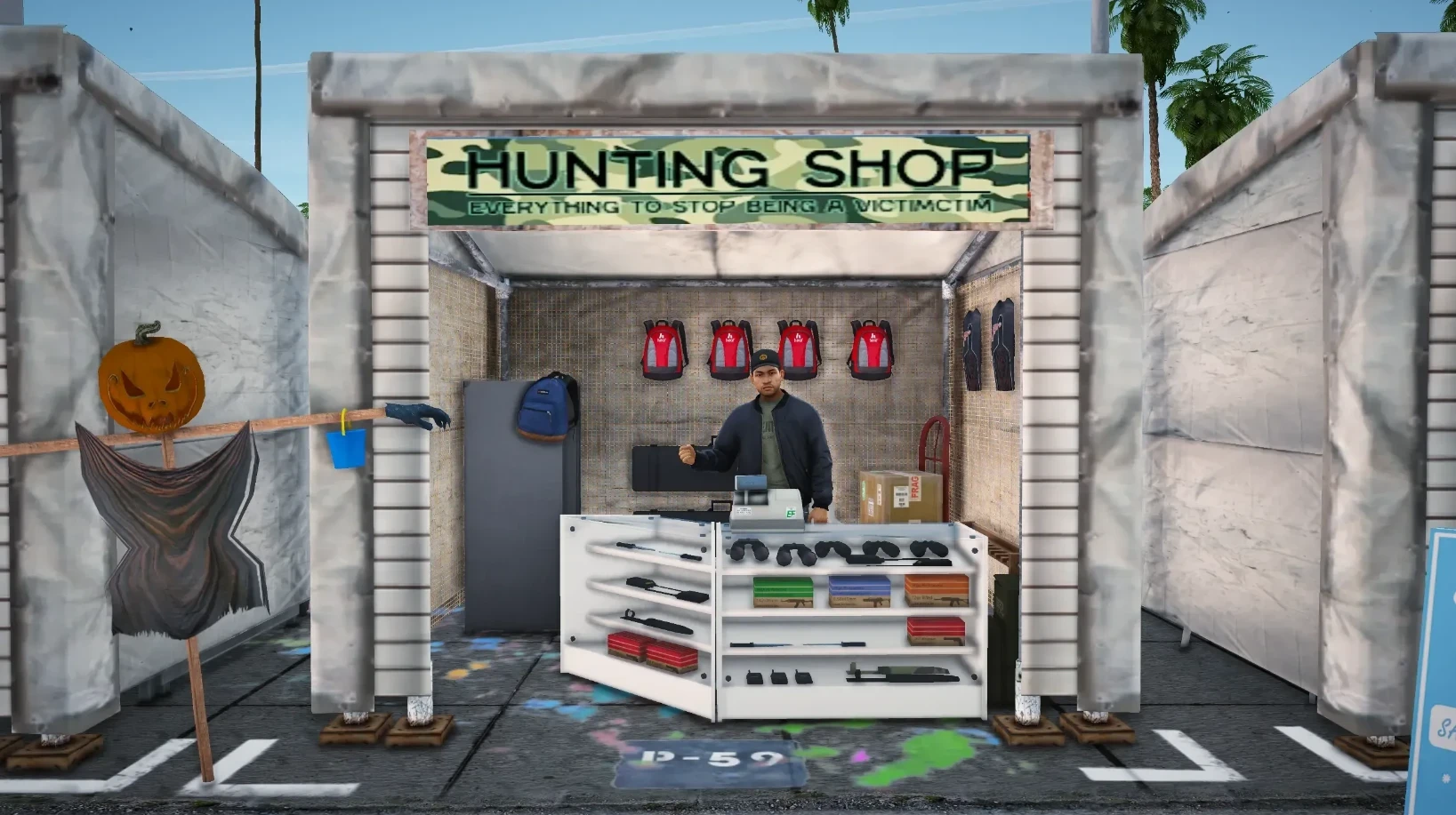 Hier kannst du Ferngläser und Baseballschläger kaufen sowie Waffen verkaufen, wie zum Beispiel die Kurzschrotflinte, die Pumpenschrotflinte, die Pumpenschrotflinte MK2, die Doppelschrotflinte, die Colt 45 MK2 Pistole, die Panzerbrechende Pistole, die Sturmschrotflinte und die Schwere Schrotflinte.