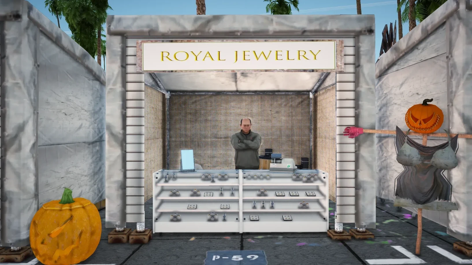 Der Juwelier bietet die Möglichkeit, wertvolle Gegenstände wie Goldbarren, Schädel mit Diamanten, Puma-Statuette, antike Teller und eine Sammlung Schweizer Uhren zu verkaufen.
