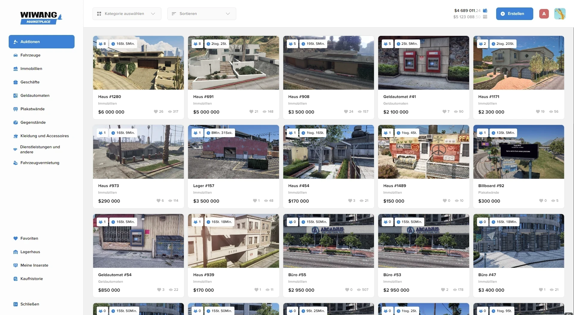 Nach dem Kauf werden Ihre Gegenstände an das "Lager" gesendet. Für das Einstellen einer Anzeige wird eine Gebühr von 500 $ pro Stunde erhoben (Sie können einen Artikel für mindestens 5 Stunden anzeigen). Sie können den Artikel bar oder mit einer Kreditkarte bezahlen.
