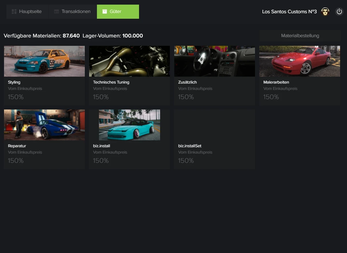 Um Waren oder Ressourcen einzurichten und zu kaufen, öffnen Sie bitte die spezielle Anwendung auf Ihrem "My Business"-Tablet und gehen Sie zum Abschnitt "Waren". Durch einfaches Tippen auf einen Artikel können Sie die Kosten für jeden Artikel individuell festlegen und einen Kauf tätigen.
