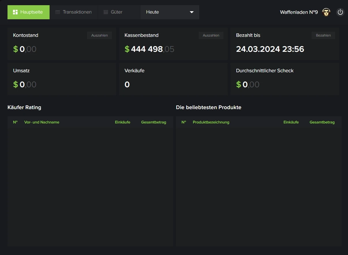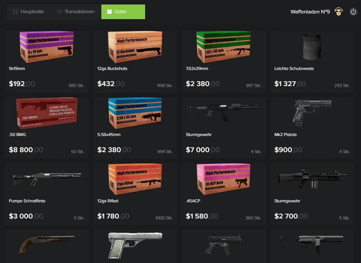 Der Kauf eines Waffenladens ist über den Marktplatz, die Marktplatz Auktion oder den direkten Kauf von anderen Spielern möglich. Bitte beachten Sie: Wenn Sie weniger als 5 Stunden pro Woche online sind, kann Ihr Unternehmen Ihnen weggenommen werden. Sollten Sie einmal eine Woche nicht online sein können, informieren Sie bitte die Administration darüber.