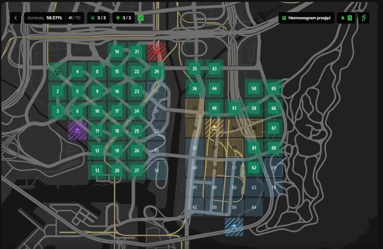 Frakcja - Gangi, wybrać terytorium do zdobycia i nacisnąć zaatakuj, następnie daje się wybór: o której godzinie będzie zdobycie, ilu uczestników weźmie udział i jaki będzie kaliber, a także wybór uczestników. Aby zakończyć, należy nacisnąć Zaplanuj atak.