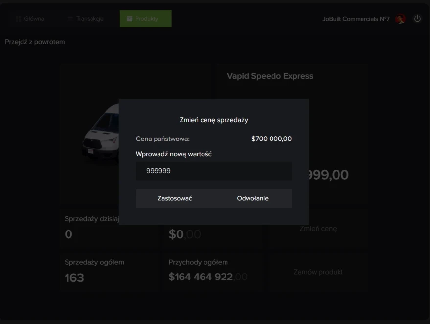 "Dla dostosowania produktów lub zasobów oraz dokonania ich zakupu należy otworzyć specjalną aplikację na tablecie o nazwie "Moja Firma" i przejść do sekcji "Produkty". Poprzez proste kliknięcia na produkt można indywidualnie dostosować cenę każdego produktu oraz dokonać zakupu."