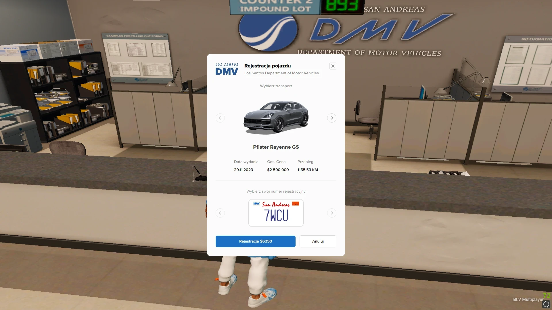 Naciśnięcie przycisku „Zapisz do inwentarza” wygodnie przenosi numer rejestracyjny do inwentarza gracza w celu późniejszej rejestracji na pojeździe. Pamiętaj jednak, że niezarejestrowany numer może być sprzedany, wymieniony lub nawet utylizowany według twojego życzenia.
