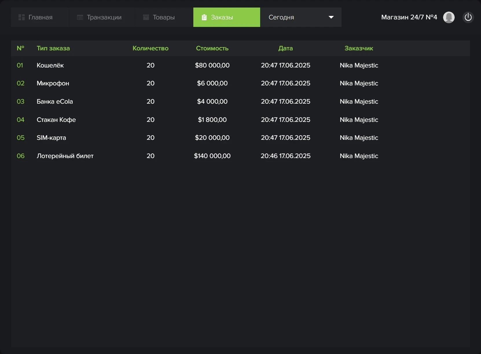 Добавлен раздел «Заказы» в приложение для управления бизнесом. В нём отображаются все заказы товаров или материалов для данного бизнеса