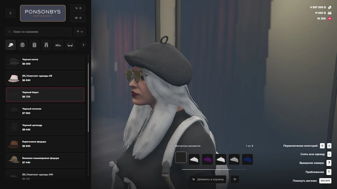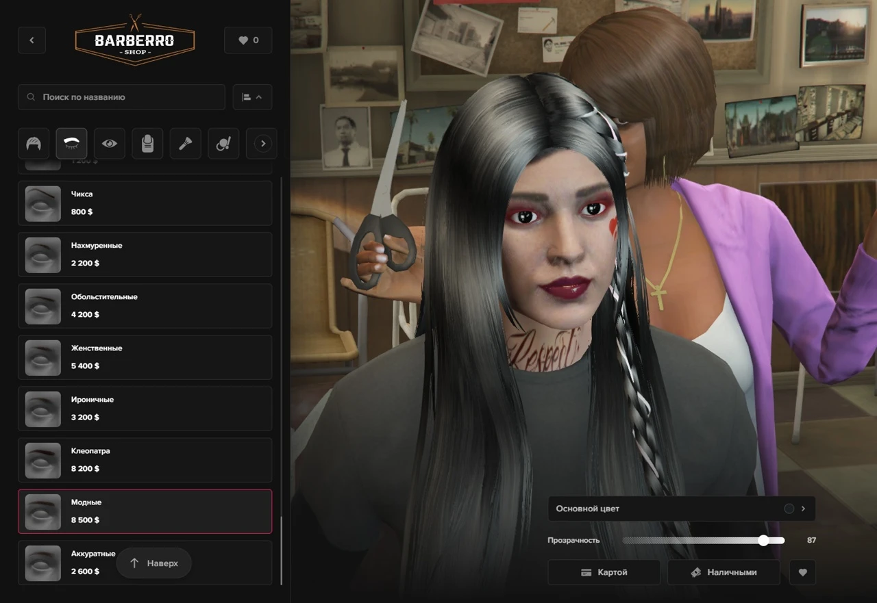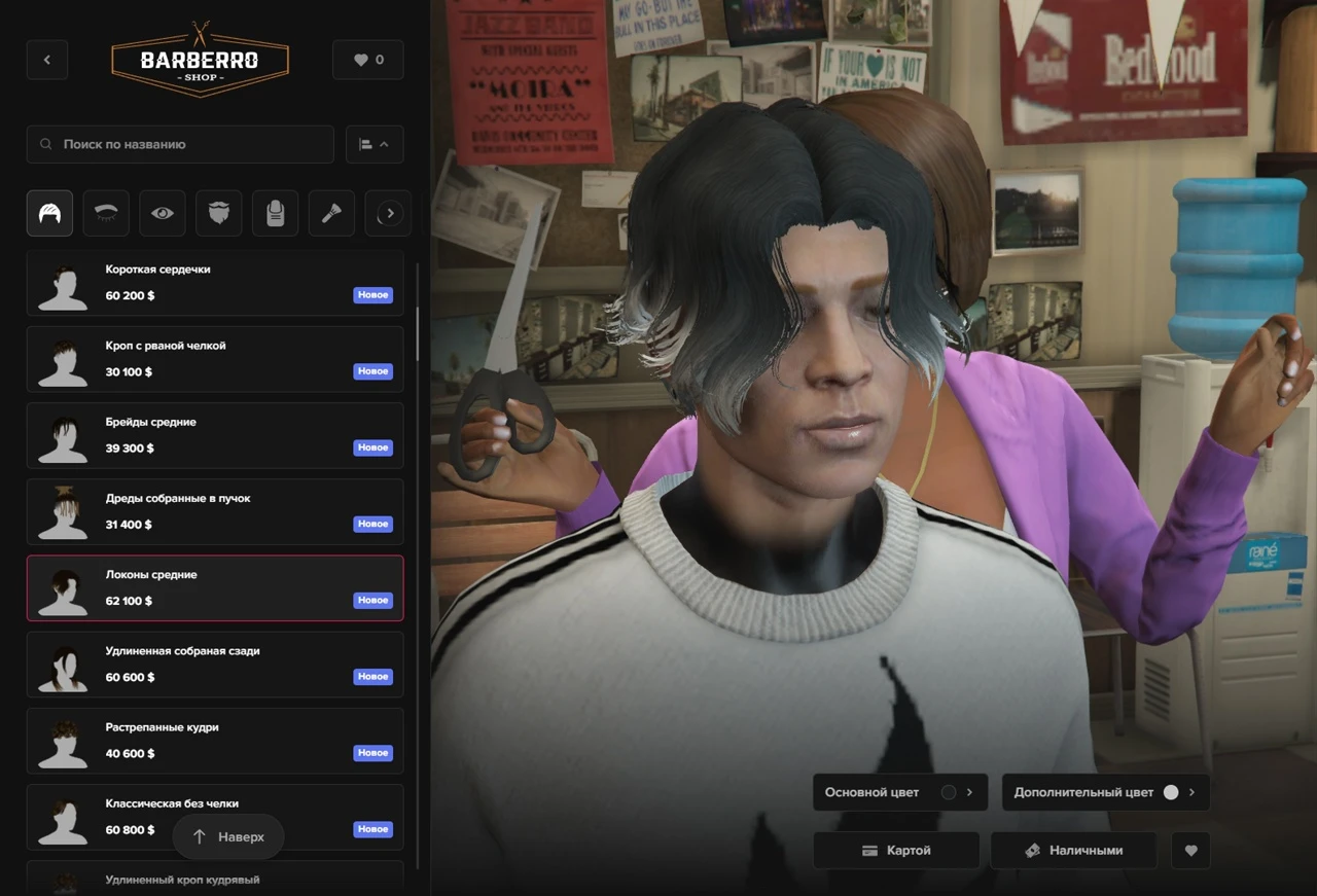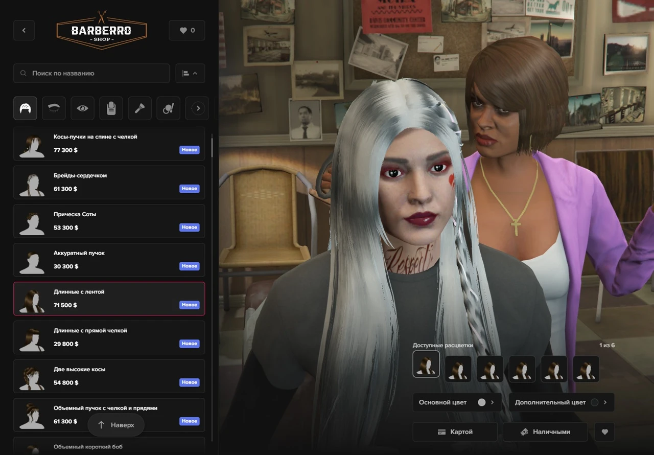 Добавлена возможность цветовой настройки у элементов кастомизации в барбершопе;
