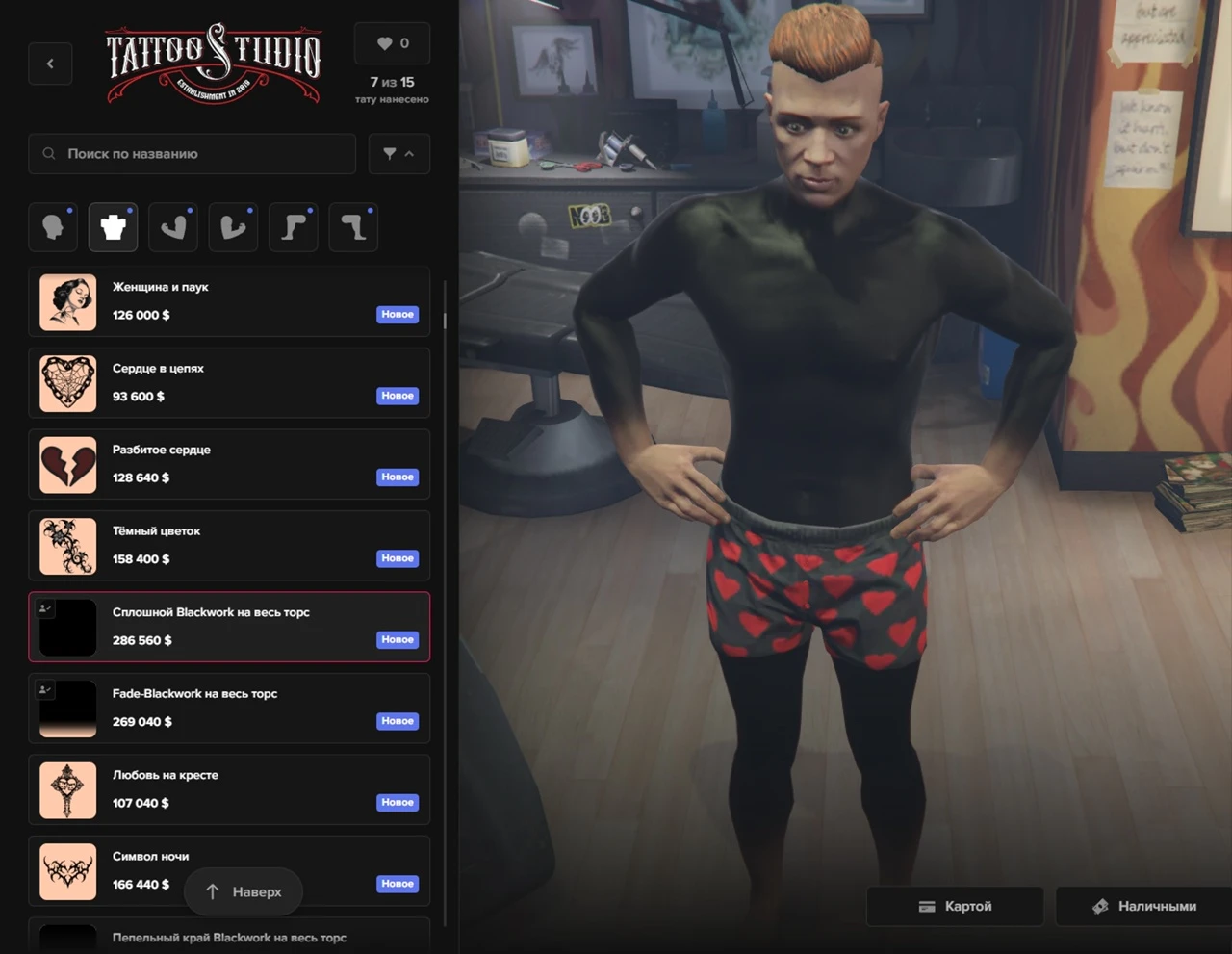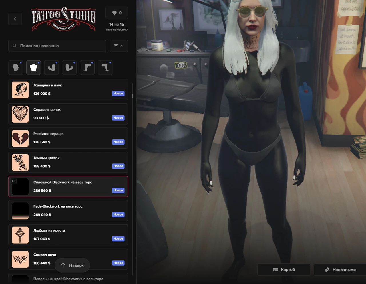 Добавлено более 80 новых татуировок, среди них коллекция "Blackwork";