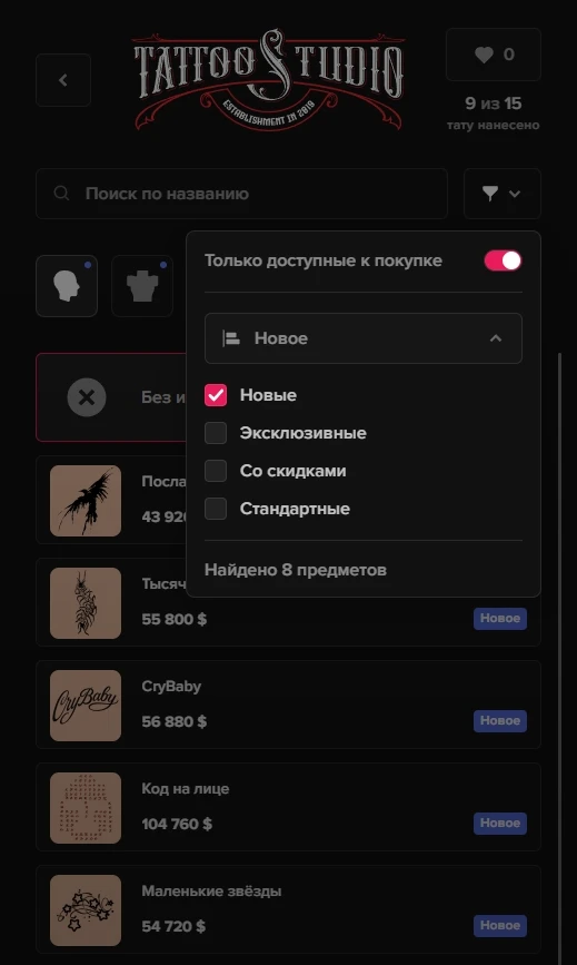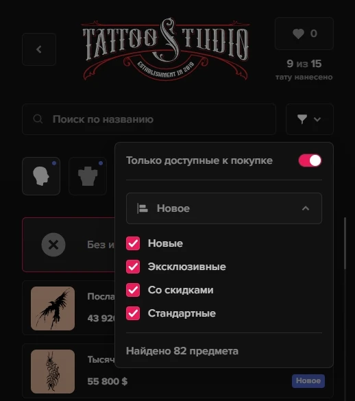 В магазине Ф2 убрана категория "Тату", все тату из этого раздела доступны в тату салонах.