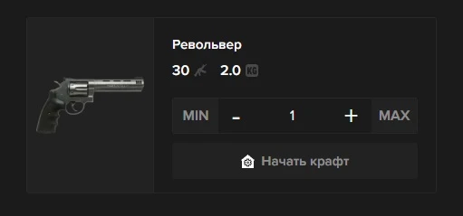 Наградной револьвер (SD): цена — 440 материалов, вес — 1.5 кг, тип патрона — .357 Magnum, урон — 44.