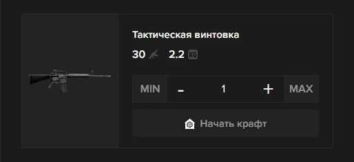 Боевая винтовка (Банды): цена — 45 материалов, вес — 3.0 кг, тип патрона — 5.56x45 мм, урон — 16.