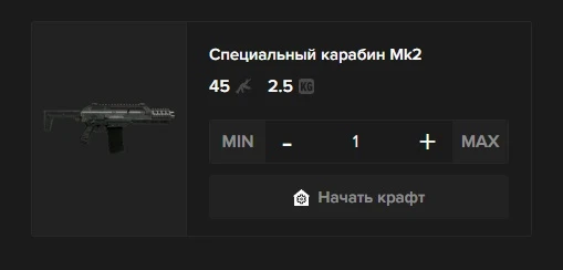 Специальный карабин Mk2: цена — 45 материалов, увеличен вес до 2.5 кг (было 2.3 кг), изменён тип патрона на 7.62x39 мм, увеличен урон до 15 (было 13).