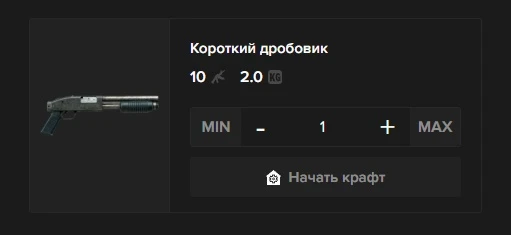 Тяжёлый дробовик (убран из гос. крафта): увеличен вес до 3.4 кг (было 3.340 кг).
