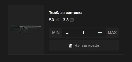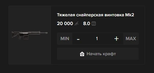 Винтовка Marksman: шанс — 1% на 1 ящик, вес — 3.9 кг, дальность — 140 м, тип патрона — 7.62x39 мм, урон — 32.