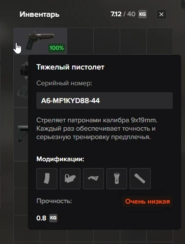 Карманный пистолет: уменьшен вес до 0.4 кг (было 0.5 кг), урон увеличен до 15 (было 10).