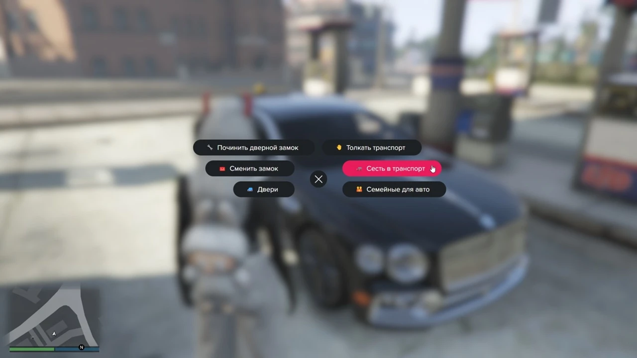 В меню взаимодействия добавлен новый пункт: «Сесть в транспорт».