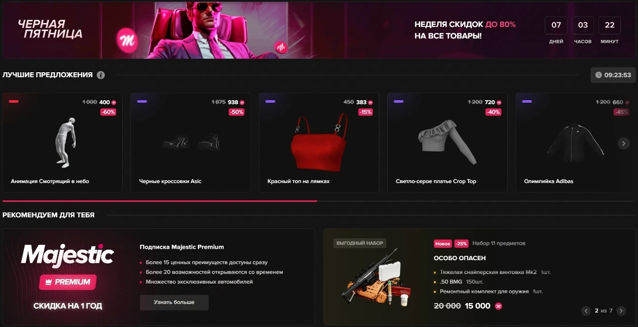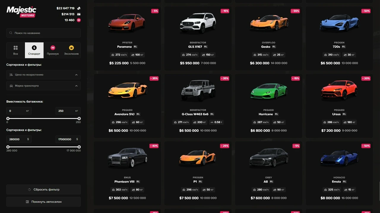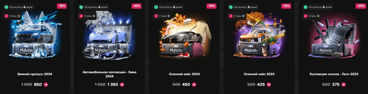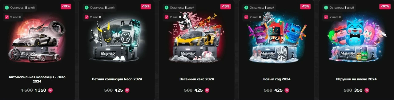 Добавлена возможность получать кейс "Премиум автомобили" за трату Majestic Coins - чем больше потрачено, тем больше кейсов можно получить.