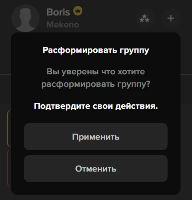 Если член группы выйдет из игры - у него есть 10 минут на возврат, иначе он будет полностью исключен. Каждый член группы видит никнейм участников.