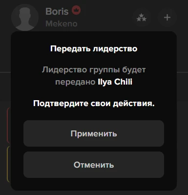 Лидер - по умолчанию красный цвет индикатора- Назначать заместителей;