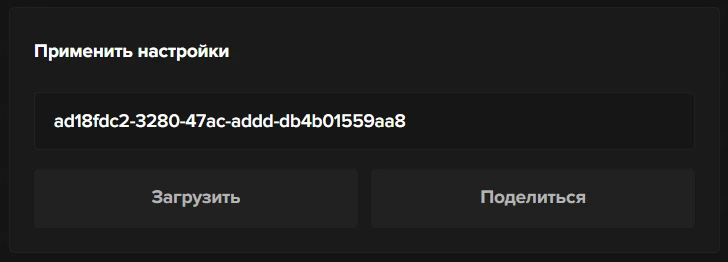 Поделиться внизу экрана. Код профиля будет скопирован. Другой игрок может взять код профиля, вставить в поле внизу экрана и нажать