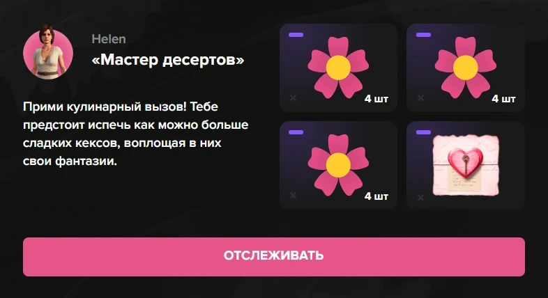 F2 - Праздник весны и выберите соответствующий квест. Для выполнения задания вам необходимо будет несколько раз собрать десерты согласно рецепту.Каждые 4 часа можно выполнять этот квест и получать награды.