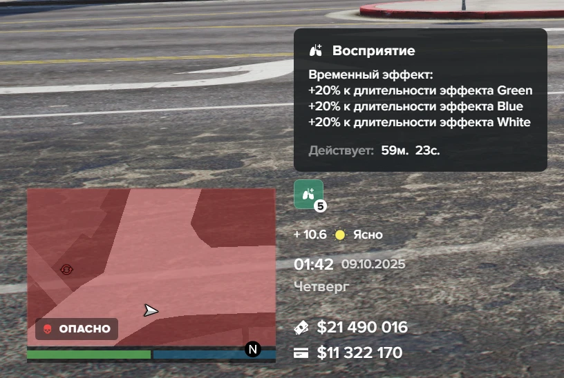 Участник криминальной организации за каждого завербованного им дилера получит по 1 множителю эффекта "Восприятие", который увеличит длительность эффекта наркотиков на 1 час, прибавляя 4% за каждый множитель.