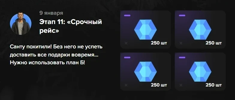 Зимний ивент продлится с 30 декабря 2023 года по 14 января 2024 года. За прохождение квестов вы будете получать различное количество XP для Зимнего Battle Pass 2024. Каждый день игры в 10:00 по МСК будет раскрываться новый персонаж, а Эва на рынке станет вашим проводником в захватывающий мир Северного Янктона.
